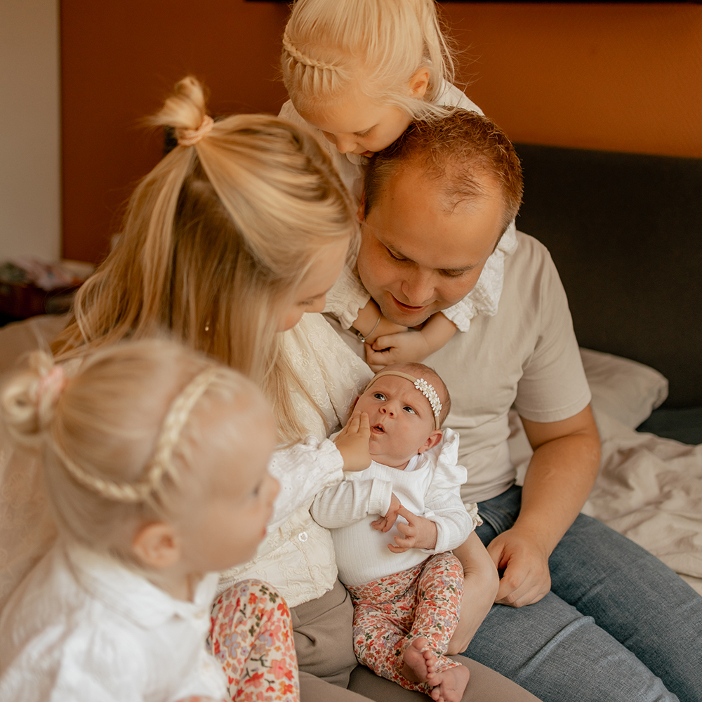 Als ervaren newbornfotograaf in Friesland verzorg ik een liefdevolle en ontspannen newbornshoot in Friesland, bij jullie thuis in jullie eigen vertrouwde omgeving. Newbornfotografie aan huis zorgt voor rust, comfort en pure beelden. We zoeken samen het mooiste daglicht in huis op. Ik werk uitsluitend met natuurlijk licht, wat zorgt voor zachte, tijdloze en warme newbornfoto’s.